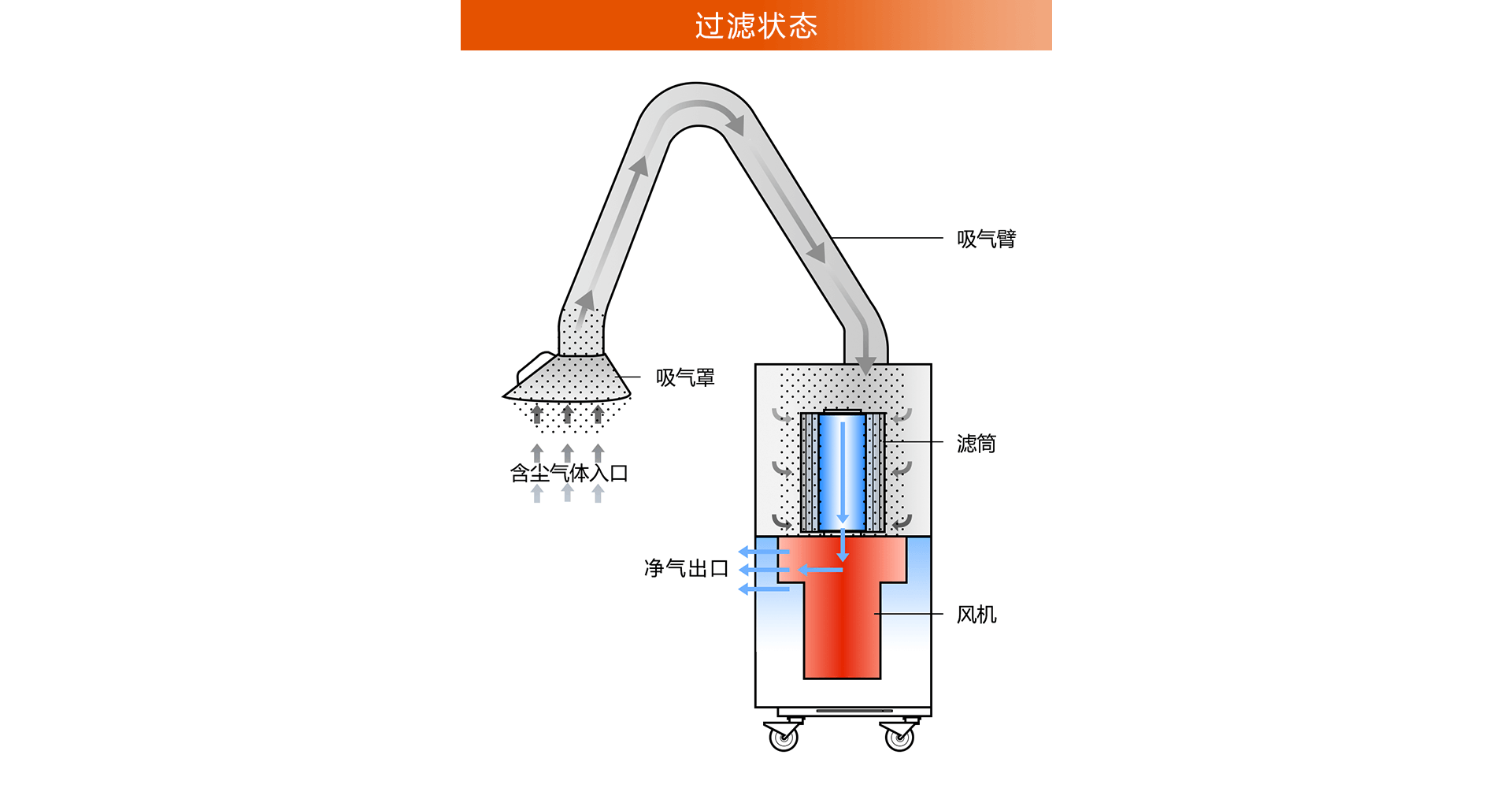 通過反復小幅度的沖擊振動,將積聚在濾筒外部的粉塵震落至灰斗內。